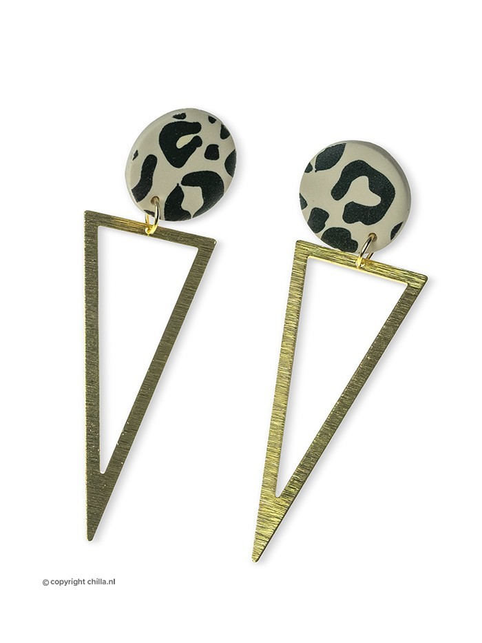 Unique handmade leopard earrings with gold-plated triangles. Statement earrings for the Wild Woman in you! All materials are nickel-free and hypoallergenic. Length: 6.5 cm.