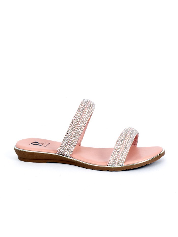 These beautiful pink sandals feature gorgeous crystal stone embellishments with a small wedge. The sandals have just the right amount of bling as they subtly sparkle. They are delightfully comfortable too as they feature elasticated straps and a cushioned sole. The perfect beach accessory or team them with your favorite skirt in spring!