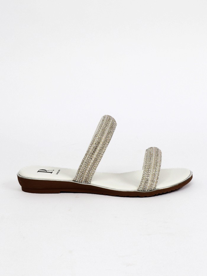 These beautiful white sandals feature gorgeous crystal stone embellishments with a small wedge. The sandals have just the right amount of bling as they subtly sparkle. They are delightfully comfortable too as they feature elasticated straps and a cushioned sole. The perfect beach accessory or team them with your favorite skirt in spring!