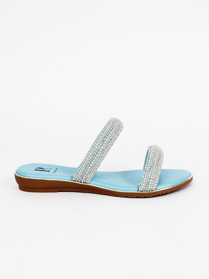Deze prachtige blauwe sandalen hebben prachtige versieringen met kristallen en een kleine sleehak. De sandalen hebben precies de juiste hoeveelheid bling en zijn subtiel sprankelend. Ze zijn ook heerlijk comfortabel omdat ze zijn voorzien van elastische banden en een zachte zool. Het perfecte strandaccessoire of combineer ze in het voorjaar met je favoriete rok!